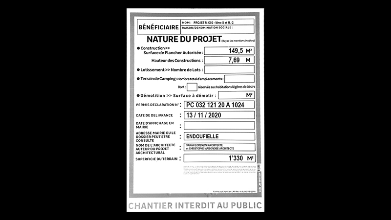 Date : Etudes Juin-Octobre 2020 – demande de permis de construire en cours